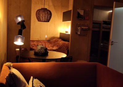 In onze huisjes voel je je direct thuis. Ze zijn knus, compact en je hebt er veel privacy. Lekker lezen, ontspannen in de hottub en je eigen vuurtje stoken? Of juist geconcentreerd en afgezonderd werken aan een deadline? Dat kan bij ons allemaal! En wil je eropuit? Je bent zo in het bos voor een lange wandeltocht of een uitdagend mountainbike parcours of je bezoekt een brinkdorpje of museum in de buurt. En wat ook fijn is, je hoeft je op ons terrein met 5 tiny houses niet verloren te voelen. Je bent in je uppie maar niet in the middle of nowhere en deelt ons natuurterrein met anderen. Dat vind ik zelf altijd een geruststellend idee als ik solo op vakantie ga.