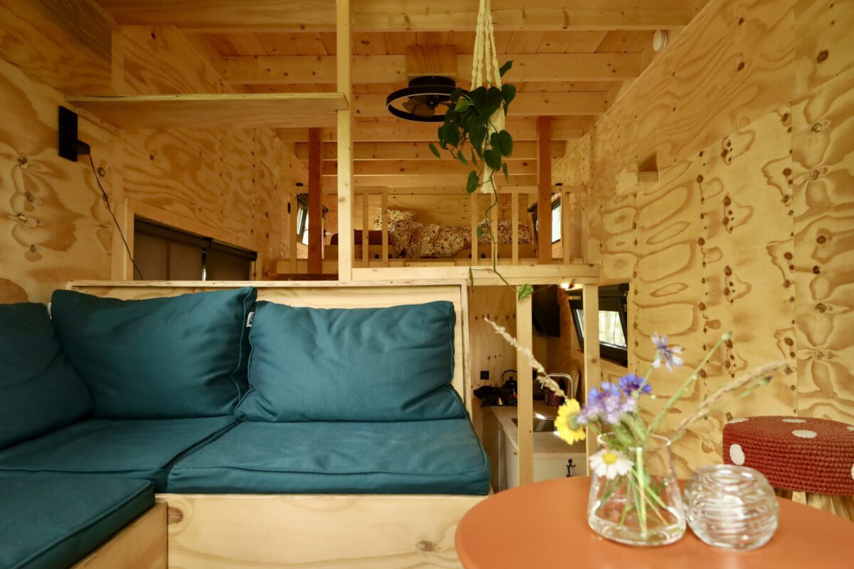 “Wij hebben een weekend in dit gezellige huisje gelogeerd en we waren op slag verliefd. Het is klein, maar van alle gemakken voorzien. En het is een sport om te ontdekken welke vernuftige ingrepen zijn gedaan om slim gebruik te maken van de ruimte. Onze twee jongens sliepen in de kamer onder het zitgedeelte. Ze vonden het fantastisch en wilden vroeger naar bed dan ooit! Wij waren er in een vrij koud weekend, maar met de houtkachel was het huisje snel op temperatuur. En dan lekker met een kop thee onder een dekentje op de bank, vrij uitkijken over de naastgelegen boomgaard. Echt een gevoel van even helemaal eruit te zijn. Aanrader!”