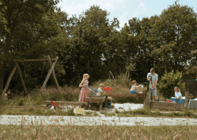 Bij ons vermaken de kinderen zichzelf. Slingerend de sloot over, eindeloos zwieren op de nestschommel en kliederen bij de waterpomp. Of lekker scheuren op de skelters. Samen hutten bouwen en struinen door de boomgaard. En kijken bij de schaapjes, konijnen en kippen verveelt nooit.
